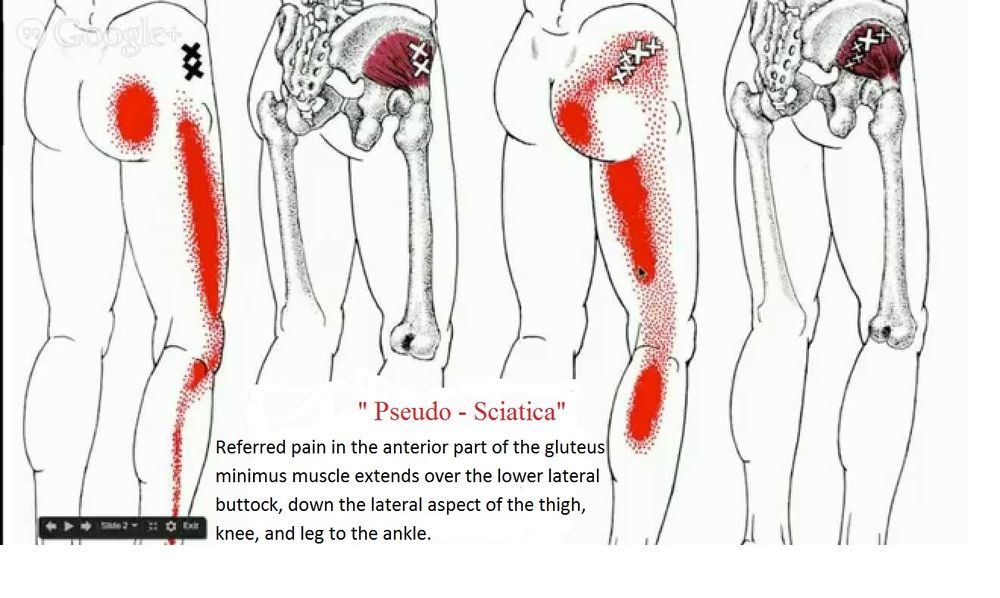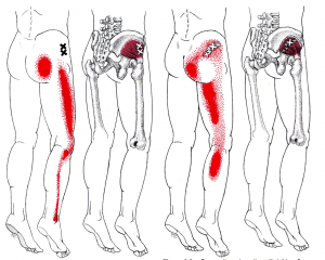 Click here to view pain referral charts for Sciatica and Piriformis Syndrome pages 1 , 2 , 3 and 4 (from Abbott Center for Neuromuscular Therapy)
